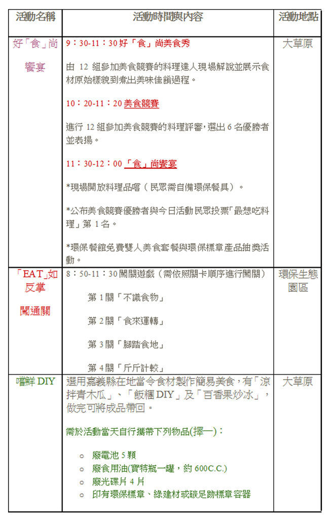 為展現嘉義縣當地當季農特產品的美味,特舉辦本次創意料理比賽。