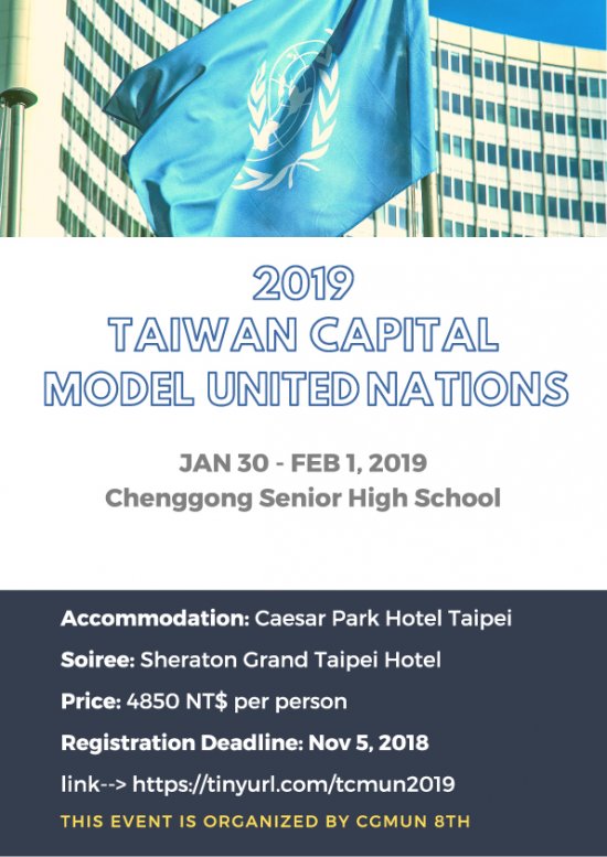 主旨:臺北市立成功高級中學模擬聯合國社舉辦「臺灣首府模擬聯合國會議」活動。