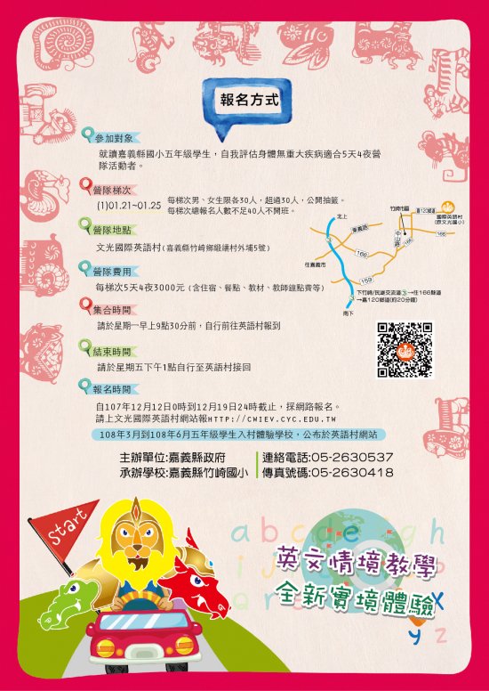 附件為文光國際英語村寒假育樂營DM電子檔,歡迎就讀嘉義縣國小五年級學童踴躍報名。