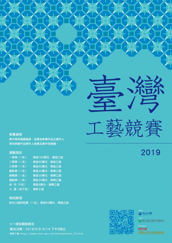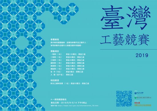 國立臺灣工藝研究發展中心辦理「2019臺灣工藝競賽」,請民眾踴躍參加