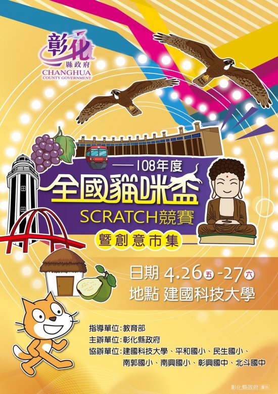 彰化縣政府辦理「108年度全國貓咪盃SCRATCH競賽暨創意市集」活動,邀請踴躍參加!
