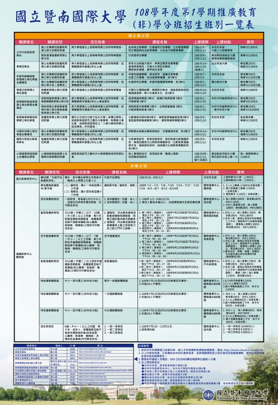 暨南大學-108學年度第1學期推廣教育課程招生班別一覽表