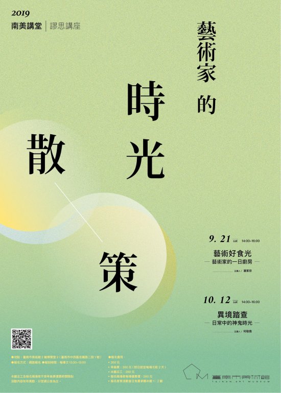 (一)9月21日(六)14:00-16:00「藝術好食光—藝術家的一日廚房」(主講人:潘家欣)。