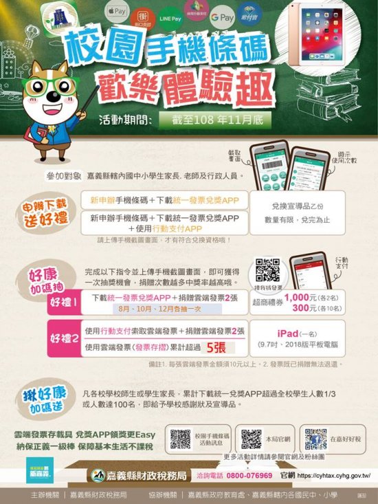 | 申辦下載送好禮1 | 新申辦手機條碼並下載統一發票兌獎APP者,上傳下載APP成功的手機截圖畫面 | 可兌換宣導品1份 | https://reurl.cc/9xjNV | 下載說明 |