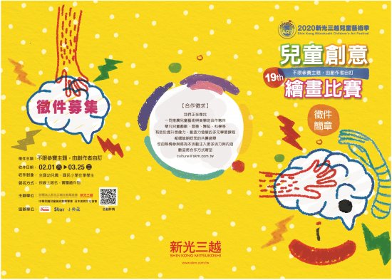 轉知財團法人新光三越文教基金會辦理之「2020新光三越兒童創意繪畫比賽」簡章乙份,歡迎國小及幼兒園學童踴躍報名參加。