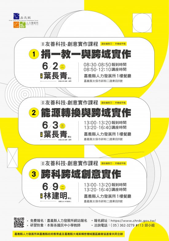研習目的:「打破學校傳統分科概念,強調「手眼實作」,提供教師最新教具與資源,以跨領域、多元化的操作,培育教師因應新課綱的整合性教學能力。」