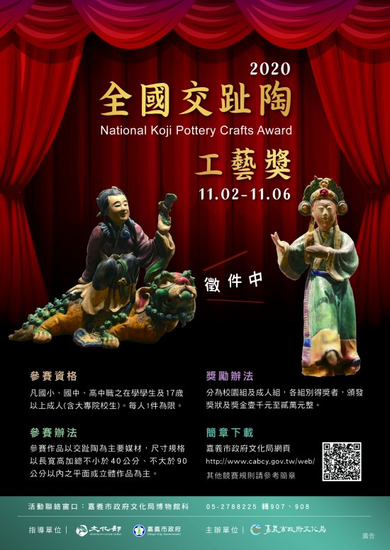 一、 嘉義市是交趾陶的故鄉,為了延續傳承交趾陶特色工藝,鼓勵一般民眾參與交趾陶創作,本局提供校園及社會人 士交趾陶創作競賽舞台,讓交趾陶的創作能量持續發揮。