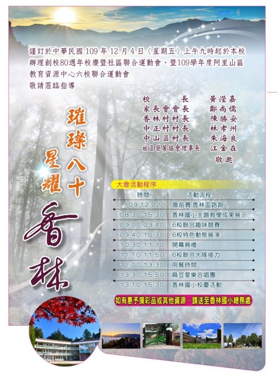 嘉義縣阿里山區教育資源中心六校聯合運動會、阿里山鄉香林國民小學80週年校慶暨社區聯合運動會