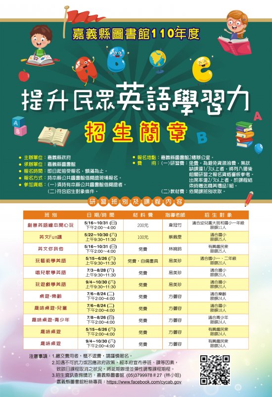 五、 報名地點:嘉義縣圖書館2樓辦公室。
