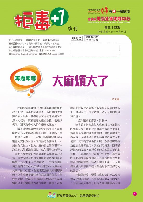 本縣毒品危害防制中心第34期「拒毒+1」季刊電子檔