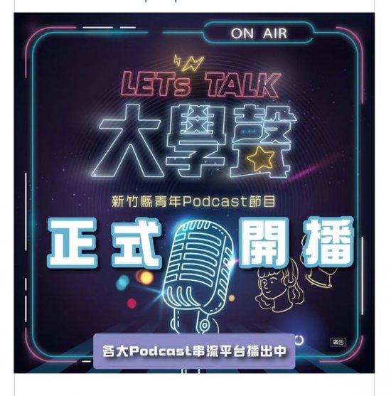 一、打造新形態的發聲管道,並用多元、新穎的計畫和政策協助青年發展,規劃製作聚焦新竹青年議題的Podcast節目,以校園生活、青年創業/就業及公共議題等主題錄製節目內容。另為讓更多對聲音媒體、內容產製有興趣的青年學子,有機會提前接觸產業、累積實戰經 驗,特徵選18位就讀於新竹縣市的大專院校學生及對聲音內容有興趣的在地青年,加入「Let's Talk大學聲」創作團隊,以年輕人的角度針對時下熱門議題發表看法。