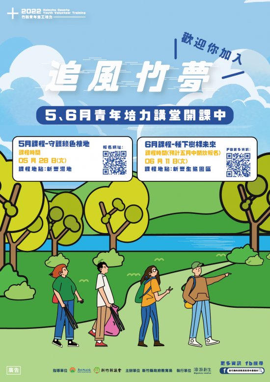 有關新竹縣政府教育局辦理「111年度新竹縣青年志工培力整合推廣-5- 6月青年培力講堂」,請鼓勵報名參加,相關條件請參閱附件。
