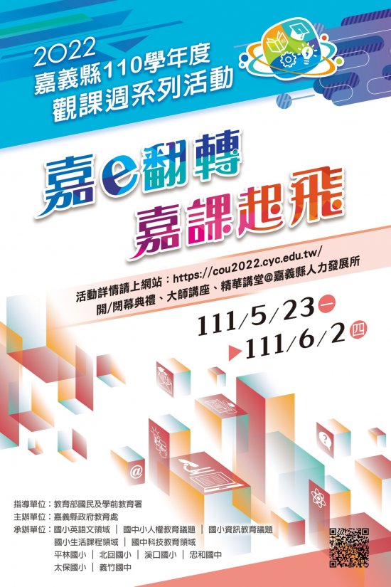 (三)各領域之觀課時程表、開放方式、名額及報名課程代號等,詳參網站課程公告,活動網址:http://cou2022.cyc.edu.tw/