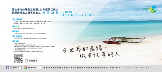 財團法人國際合作發展基金會111年度「海外服務工作團」第2梯次長期海外志工暨專案志工招募文宣及簡章