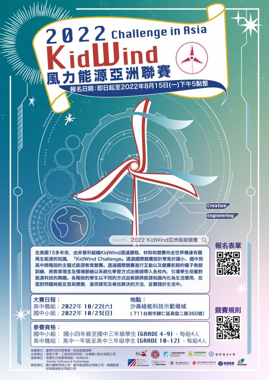 轉知長榮大學辦理2022年「KIDWIND風力能源亞洲聯賽」,共同推動氣候變遷能源教育