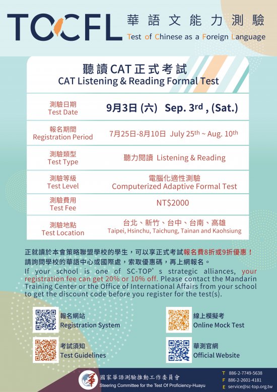 一、依據國家華語測驗推動工作委員會111年8月2日華測字第1112000092號函辦理。