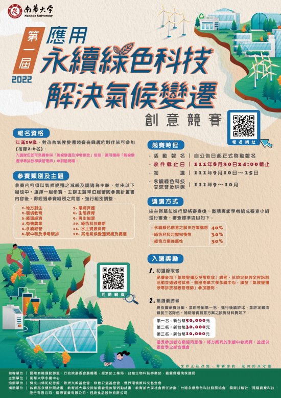 轉知南華大學辦理「第一屆應用永續綠色科技解決氣候變遷創意競賽」海報