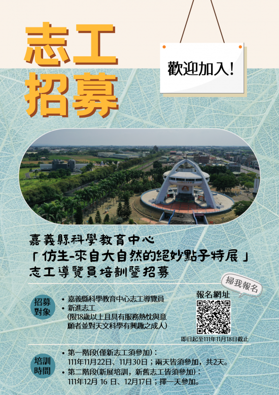 「仿生-來自大自然的絕妙點子特展」志工導覽員培訓暨招募
