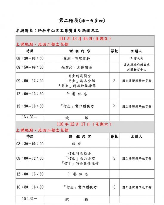 第二階段(新展培訓):111年12月 16 日、12月17日;擇一天參加。