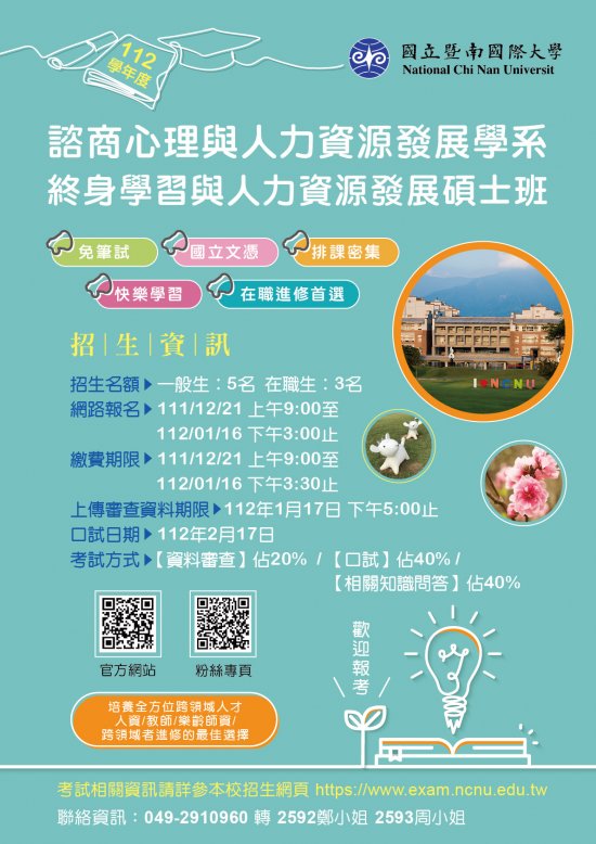 三、招生簡章下載網址https://exam.ncnu.edu.tw/1Mas.html。