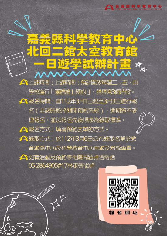 嘉義縣科學教育中心北回二館太空教育館一日遊學試辦計畫