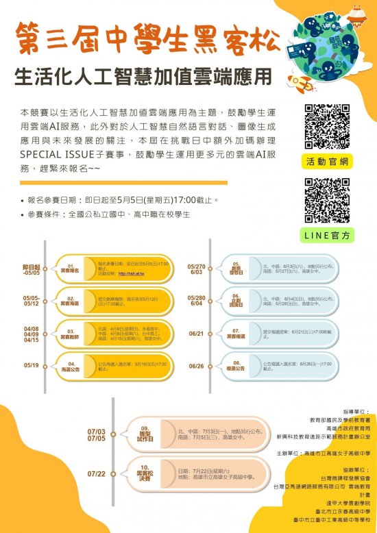 本競賽以生活化人工智慧加值雲端應用為主題,鼓勵學生運用雲端AI服務,針對生活化的議題設計創意應用,競賽簡章摘述如下(詳如附件):