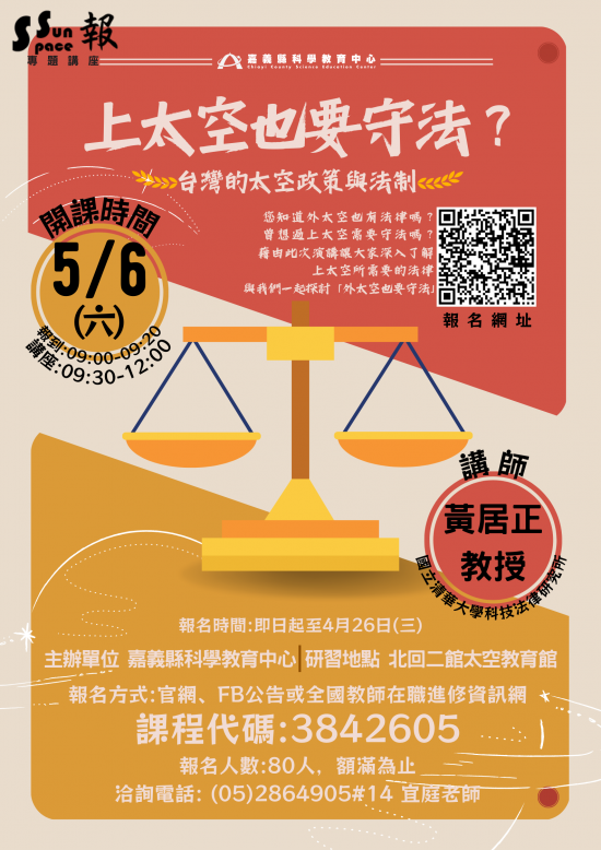 藉由此次演講讓大家深入了解上太空所需要的法律,與我們一起探討「外太空也要守法」。