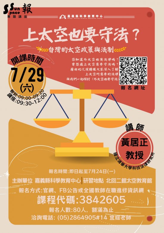 藉由此次演講讓大家深入了解上太空所需要的法律,與我們一起探討「外太空也要守法」。