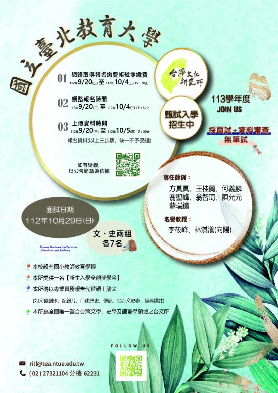 (六) 簡章下載:http://exam.ntue.edu.tw/index_E.html