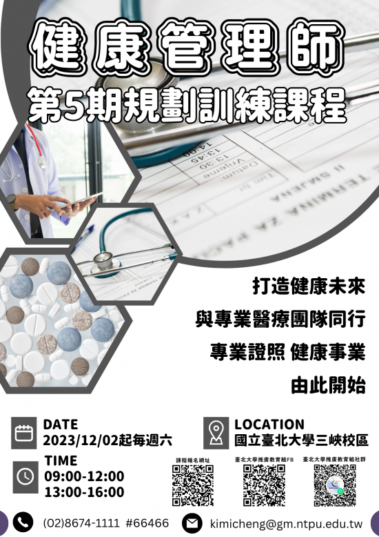 國立臺北大學辦理「三峽校區第5期健康管理師規劃訓練」課程