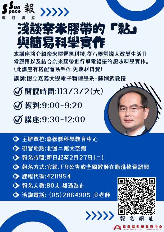 本講座將介紹奈米膠帶黑科技,從石墨烯導入改變生活日常應用以及結合奈米膠帶進行導電鉛筆的趣味科學實作。(此講座有搭配簡易手作,免收材料費)
