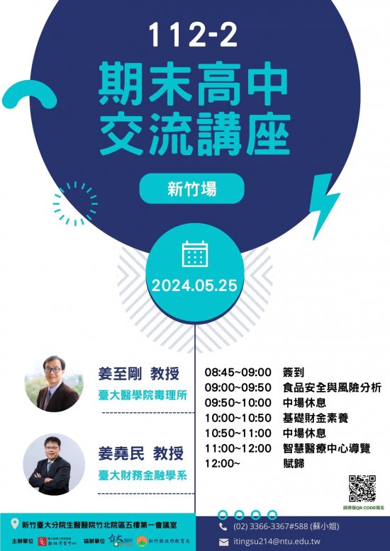 (二) 講座以實體及線上直播混成進行,實體場次50人為限;活動前將以電子郵件通知成功報名者,線上連結將附於活動通知信中,請務必確認信箱填寫無誤。
