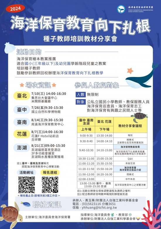 (三)臺南場:113年8月14日(星期三)假南瀛海洋保育教育中心舉辦。