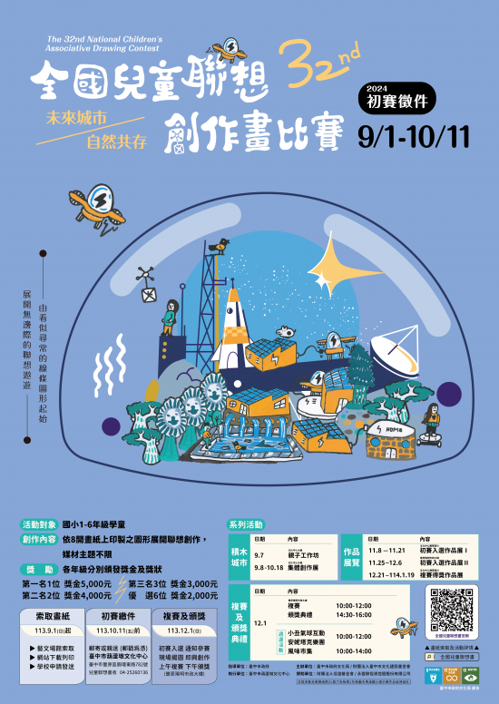 | 三、 | 活動辦法詳全國兒童聯想創作畫比賽網站(https://childdrawings.huludun.taichung.gov.tw/)。 |