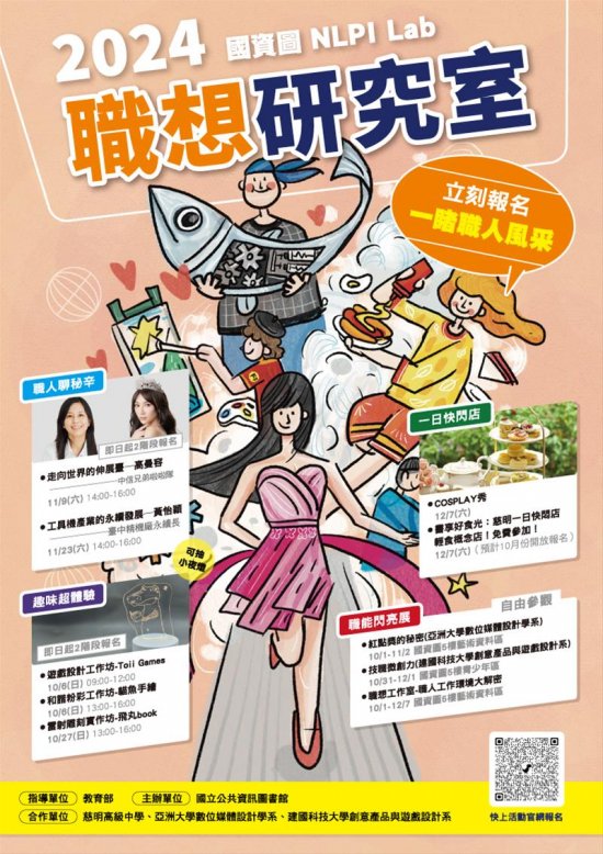 國立公共資訊圖書館辦理「職想研究室──技職群科亮點及工作坊系列活動」,鼓勵國中學生踴躍報名參加。
