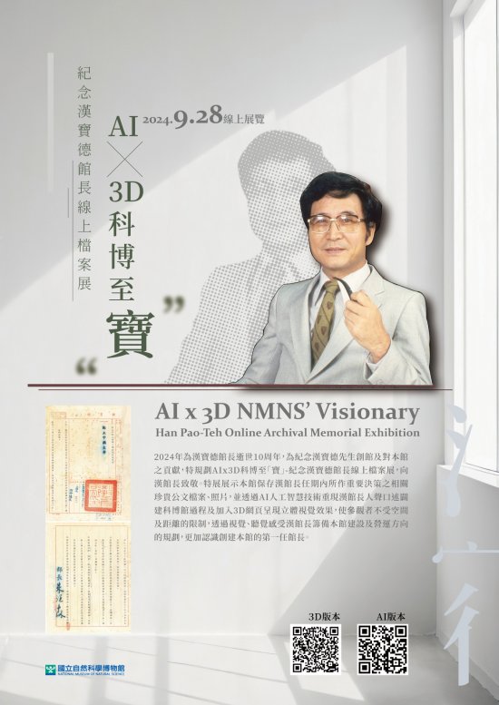 二、 旨揭展覽設計為雙網頁之AI版本及3D版本,以AI人聲技術與3D立體展示,呈現創新的數位文化體驗,歡迎至國立自然科學博物人類文化廳服務台掃描檔案展QR CODE領取3D眼鏡,於線上觀展體驗3D立體影像視覺效果。