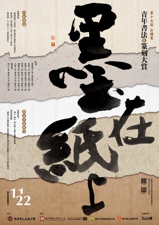 轉知第十七屆台積電青年書法暨篆刻大賞辦法,歡迎師生踴躍報名參加