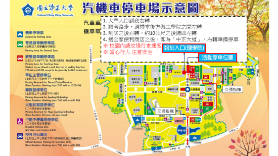 活動訂於113年11月29日(星期五) 8:20 - 15:40,請於當日至中正大學理學院一樓辦理辦到。請指導教師於11月22日前至「全國教師在職進修資訊網」報名(課程代號:4762169),全程參與者核予6.5小時研習時數。並請指導老師加入「第八屆不倒翁盃@作夥玩防災」line群組(https://line.me/R/ti/g/MT3g56LWNk),以便通知活動相關訊息。