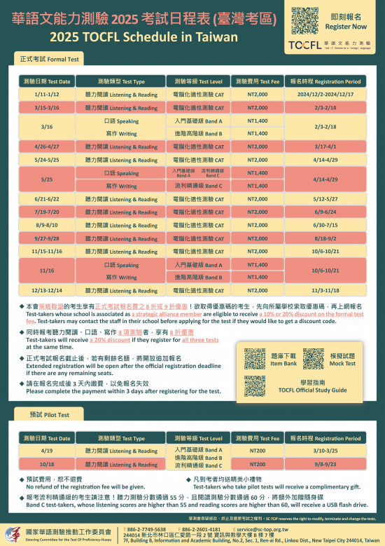 1.個人報名:請考生於報名期間逕至「華語文能力測驗線上報名系統」報名。