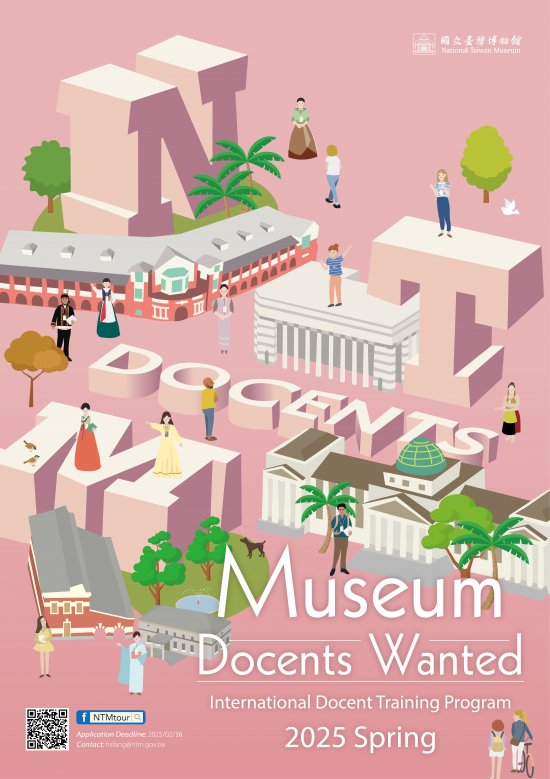 二、旨揭課程活動免費,惟需申辦臺博館年度會員資格(所需費用新臺幣300元整、可以文化幣支付),並需於2025年2月16日(週日)下午5時30分前線上完成報名(活動頁面:https://reurl.cc/r33lOO),並依將英語能力檢測證明(英語母語人士與大專院校國際學生不需檢附)及推薦信1式電郵至臺博館承辦人信箱:教育推廣組方小姐hsfang@ntm.gov.tw(於信件主旨註明:2025 International Docent Training Program)。