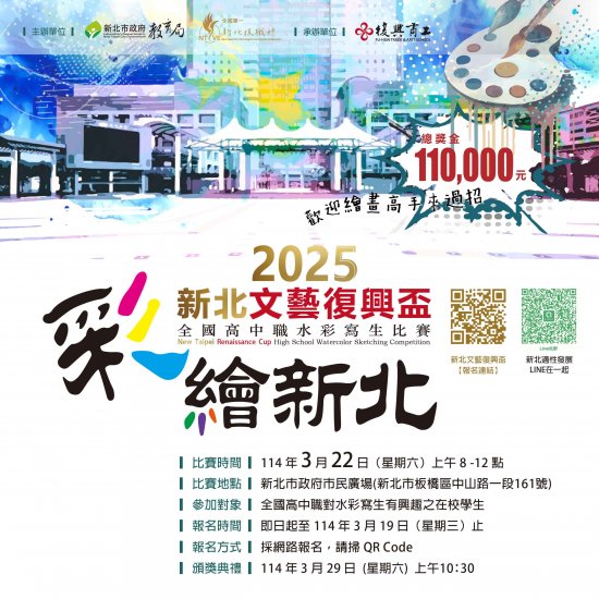 | 二、 | 本案以「文藝復興」作為繪畫活動核心精神,地點安排於新北市市民廣場,期待讓科技時代下的孩子能夠走出戶外,培養實際寫生能力,感受新北市城市人文風情。並藉此活化美感實踐力,提升學生美感素養,激發繪畫潛能,成就國家未來新銳藝術家。 |