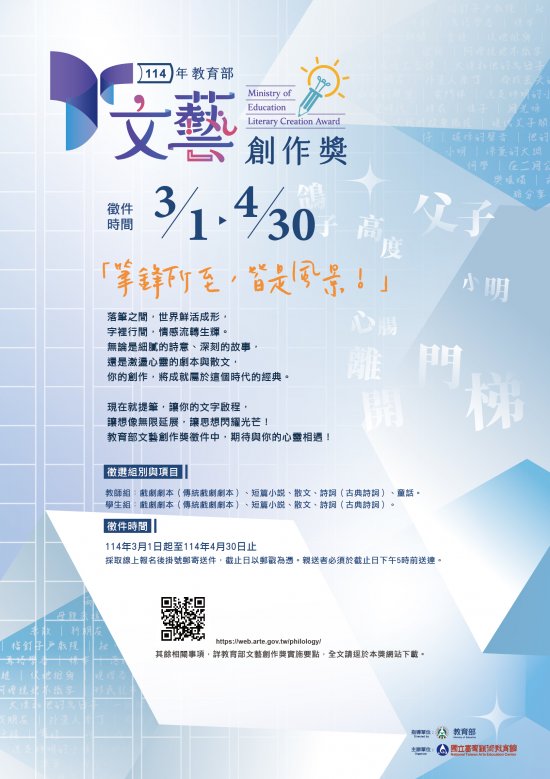 五、參選受理期間:自114年3月1日起至114年4月30日截止,採取先線上報名(網址:https://web.arte.gov.tw/philology/)後掛號郵寄送件方式辦理,截止日以郵戳為憑。親送者必須於截止日下午5時前送達。