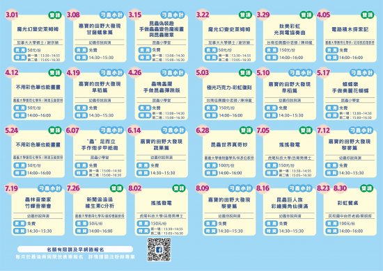 活動時間:114年3月1日至114年8月30日止,每周六下午2點-4點