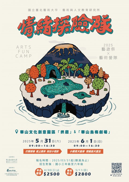 一、國立臺北藝術大學(下簡稱北藝大)每年度「藝遊祭」兒童藝術夏令營是該校藝術與人文教育研究所之特色藝術教育推廣活動,今年以「情緒探險隊」為題,將SEL社會情緒學習融入在不同的藝術課程中,包含視覺、空間、肢體、音樂、戲劇、舞蹈等,讓學員化身為情緒探員,在課程中探索情緒與藝術的可能性。