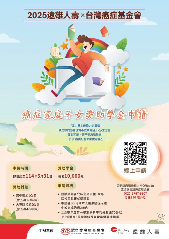 2025台灣癌症基金會x遠雄人壽-癌症家庭子女獎助學金(如附件)