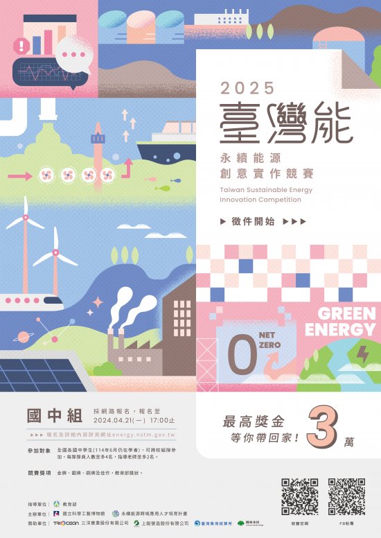 主旨: 國立科學工藝博物館主辦114年度「臺灣『能』-永續能源創意實作競賽」,檢送國中組競賽電子海報1份,鼓勵各國中學生踴躍報名參加。