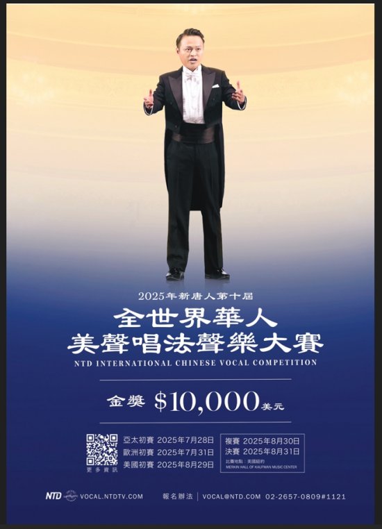 三、 亞太區初賽謹定於114年7月28日(星期一)於國立臺灣藝術教育館南海劇場(台北市中正區南海路47號)舉辦,活動報名截止時間為114年6月30日,詳細參賽辦法請至網址查詢,網址為 https://vocal.ntdtv.com/。