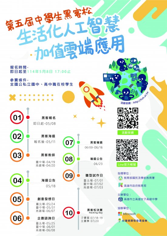 五、 詳細活動時程請參閲競賽簡章,如有相關問題,請至活動LINE官方帳號詢問(可由官網最下方連結加入)