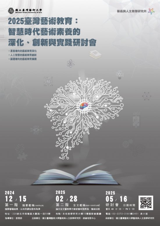一、研討會資訊: (一)時間:114年5月16日(星期五)上午8時至下午5時。 (二)地點:國立臺灣藝術大學教學研究大樓10樓國際會議廳。