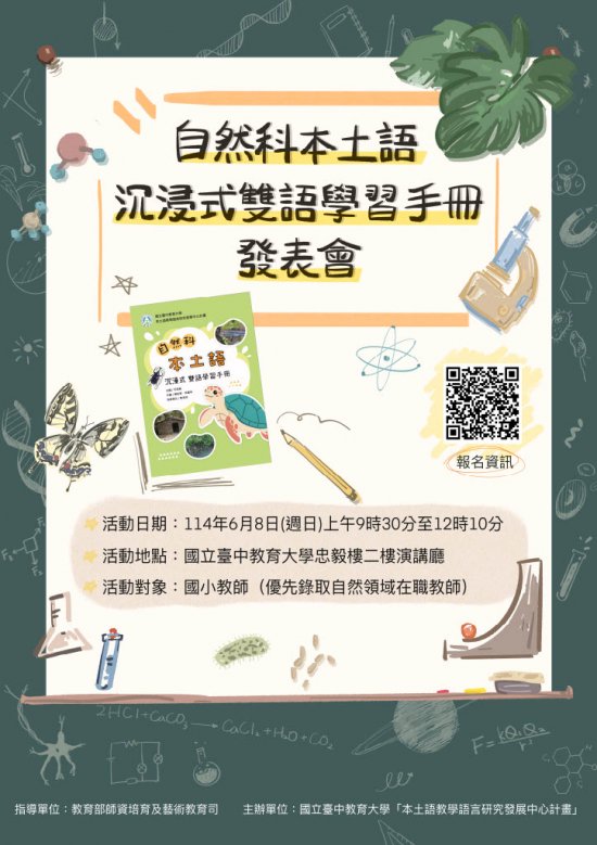 「自然科本土語沉浸式雙語學習手冊發表會」活動簡章